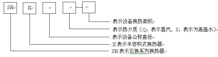 SHII型換熱器是熱交換器設(shè)備的新一代產(chǎn)品,這是將被加熱水貯存在殼體內(nèi),供熱介質(zhì)蒸汽或高溫水則在多組銅盤管并聯(lián)運(yùn)行。它是一種少貯存水量,隨時(shí)補(bǔ)充熱量,迅速換熱的高效節(jié)能設(shè)備。與其它換熱器相比,有如下優(yōu)點(diǎn):體積小、易于搬運(yùn)、立式安裝、占地面積小、浮動(dòng)盤管自形擾動(dòng)、高效換熱、自動(dòng)除垢。 一、產(chǎn)品型號(hào)說明: