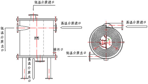 螺旋板式換熱器以完全逆向交換,傳熱效率高、結(jié)構(gòu)緊湊、體積小,高速均勻流動,污垢不宜沉積、結(jié)垢。換熱面積大等特點應(yīng)用于各個領(lǐng)域。 本公司經(jīng)過多年努力研發(fā)了“螺旋管式換熱器”新型產(chǎn)品,并申報了專利,產(chǎn)品專利號為:2010101196073。螺旋管式換熱器采用δ=0.8㎜厚不銹鋼管,利用多根螺旋管,管間并排無隙設(shè)置成螺旋盤管組,專用設(shè)備卷制成型。利用螺旋板式換熱器的運行原理達到完全逆向交換換熱。螺旋管式換熱器管內(nèi)為一螺旋通道,管外形成另一螺旋通道,管內(nèi)通道走高溫、高壓且有腐蝕介質(zhì),管外通道走另一種介質(zhì)。外型與螺旋板式換熱器相同,完全達到了螺旋板換熱器的運行原理,上下采用法蘭、盲板密封,可清洗管外通道,取消焊接,降低鋼管熱膨脹損失。也可采用管外通道直通無阻力運行,與列管式換熱器相同的體積,幾倍的換熱面積、效率。螺旋卷制解除了熱脹冷縮,由于壓差大、溫差大所采取的必須措施,降低了成本,減少了投資,不銹鋼的材質(zhì),碳鋼的成本,高效率的傳熱效果,為更好的服務(wù)客戶提供了新亮點。 其優(yōu)點為:不銹鋼管承壓高、耐高溫和耐腐蝕,承壓可達6MPa,成本低換熱效率高。如果一側(cè)腐蝕嚴重而另一側(cè)不腐蝕,螺旋管為不銹鋼管走腐蝕嚴重的介質(zhì),外圈板及堵板可用碳鋼板,這樣可降低成本。不銹鋼管管壁薄逆向交換換熱效率高。和螺旋板換熱器相比,按碳鋼的比較使用壽命長;按不銹鋼的比較價格低。 技術(shù)特性: 1、承壓高,尤其是適用于壓差大的場合,最高承壓可達6.3MPa,耐高溫。 2、螺旋管采用各種要求材質(zhì)的不銹鋼管,抗腐蝕、耐熱性能強,壁薄傳熱效率高?蛇\用到各種行業(yè),冷卻加熱等應(yīng)用以及采暖洗浴。 3、本產(chǎn)品分為不可拆式、可拆式、洗浴專用4種型式,多種型號。 ○1不可拆式I型 不可拆式I型與螺旋板式換熱器相同,上、下將管外通道采用氬弧焊焊接密封,規(guī)格由F=4㎡~250㎡,均可加工制造。